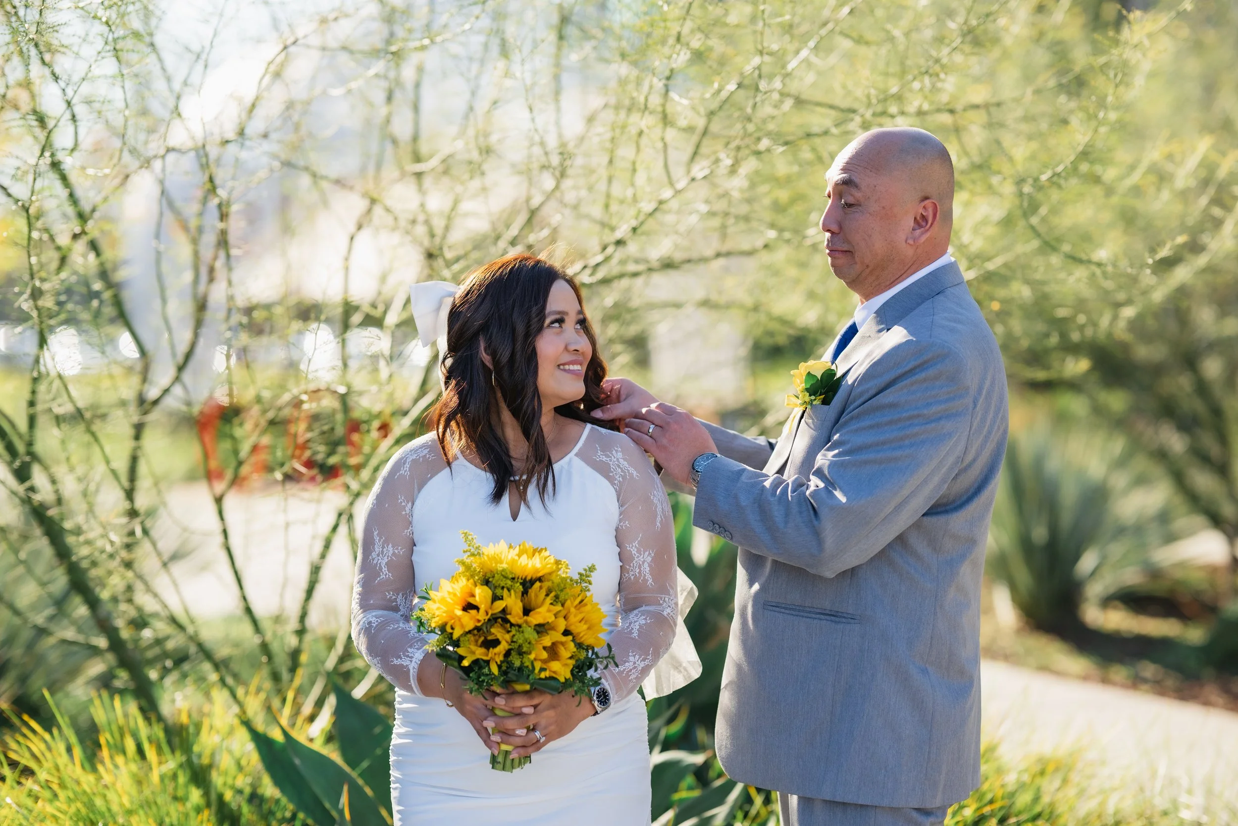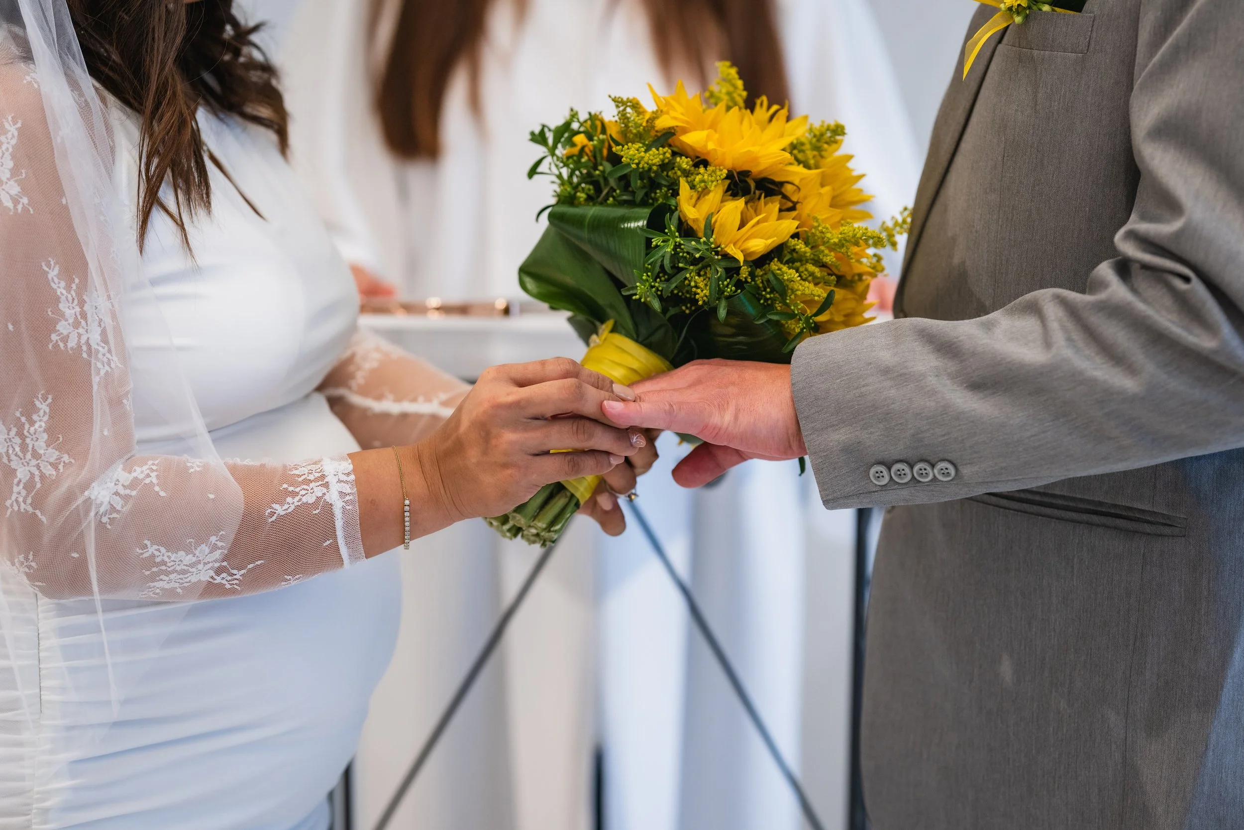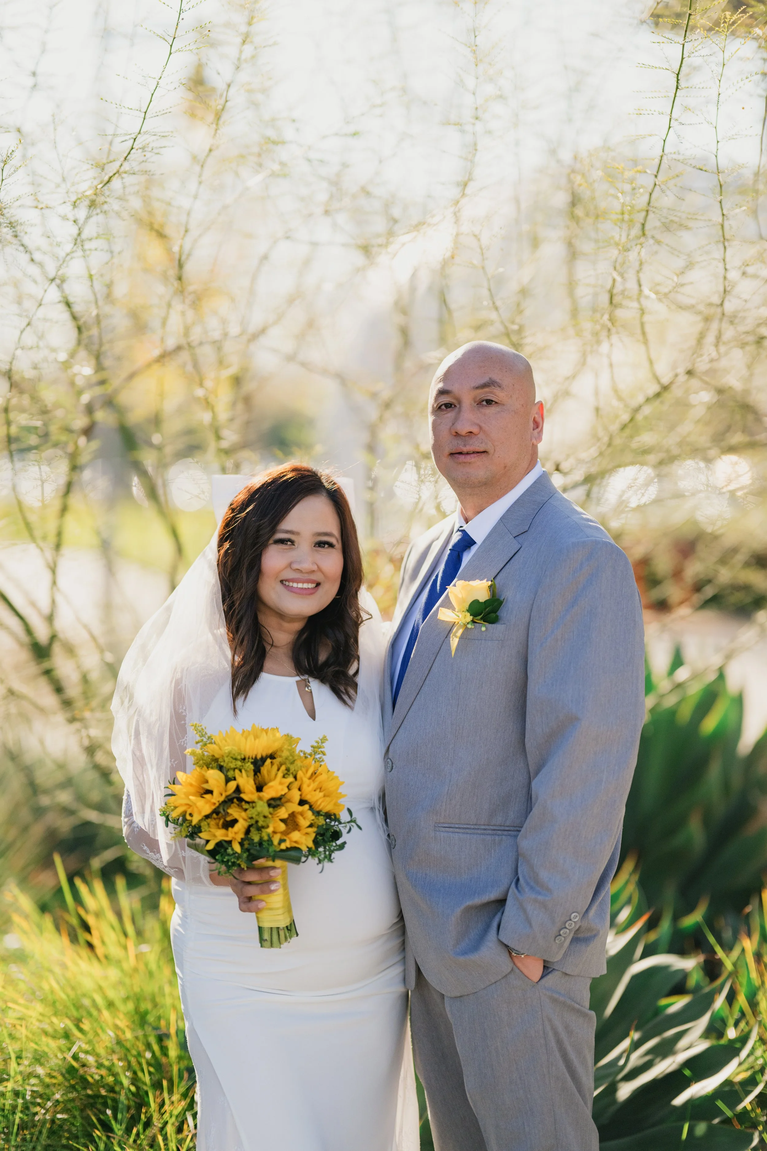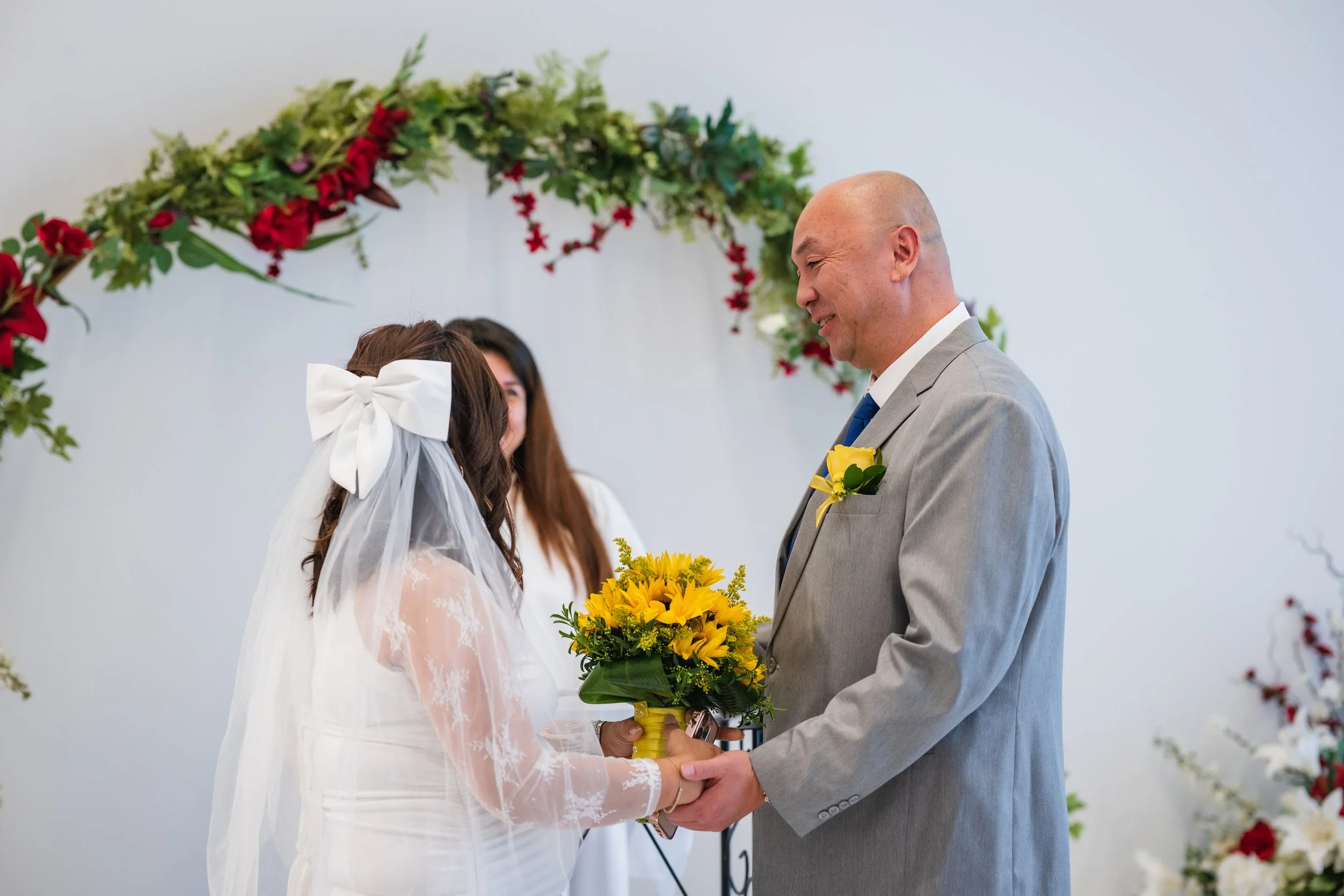 A family-centered civil wedding at the Santa Clara County Clerk-Recorder’s Office with around 20 guests, including ceremony coverage, group portraits, and relaxed outdoor portraits for the couple.